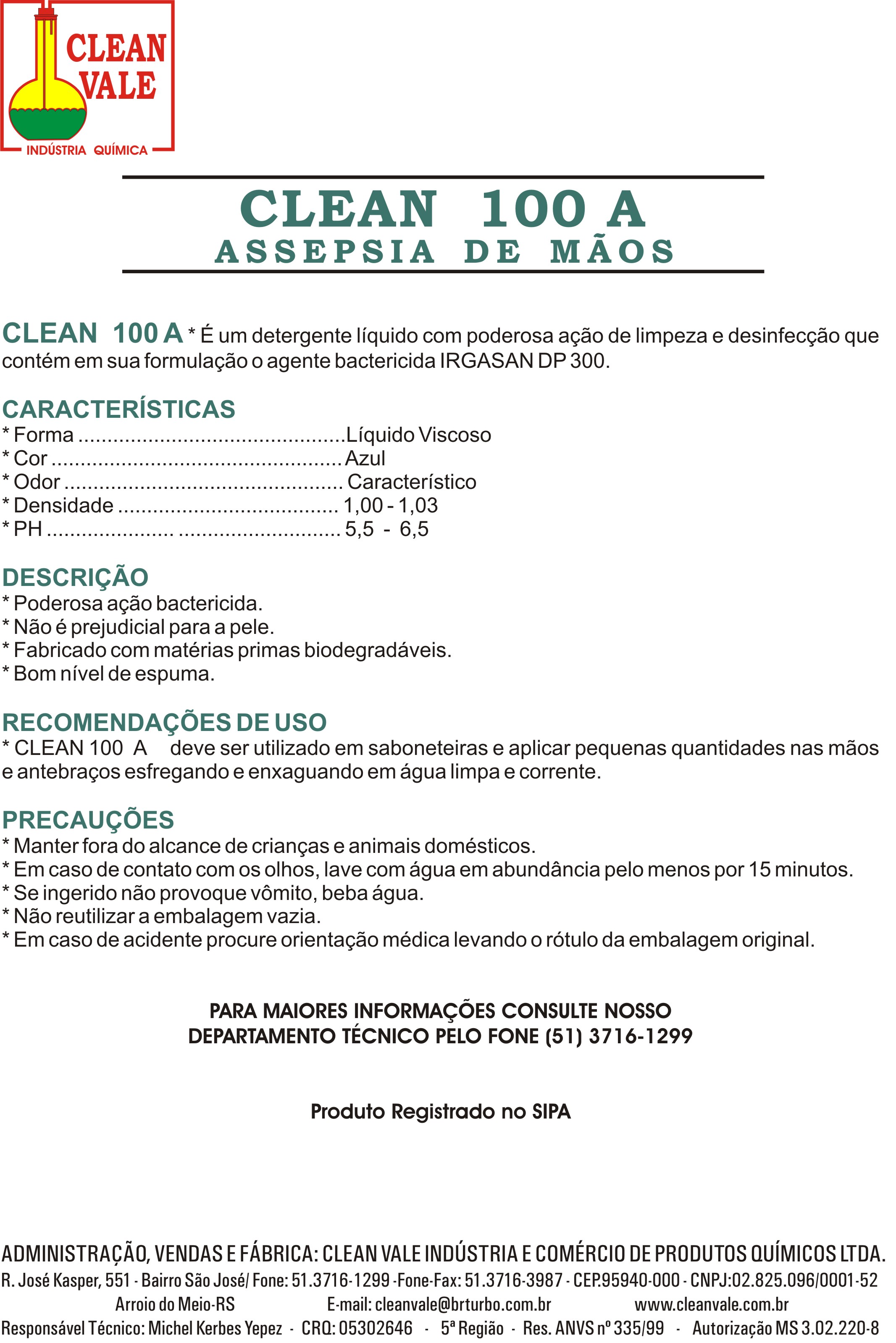 | CLEAN 100 A - Assepsia de Mãos | |||