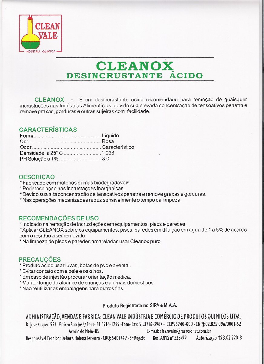É um desincrustante ácido recomendado para remoção de quaisquer incrustações nas industrias Alimentícias, devido sua elevada concentração de tensoativos penetra e remove graxas, gorduras e outras sujeiras com facilidade.